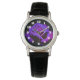 Paars Roos met waterdruppels op zwarte achtergrond Horloge