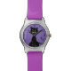 zwarte kat kijkt uit met een woeste zwarte kat die al acht van zijn negen levens heeft geleefd en paarse banden heeft. Maar deze slechte kat is nog steeds gemeen. Deze slechte zwarte kat-horloge zal een geweldig cadeau zijn voor iemand die van katten houdt.