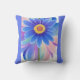 Illustratie van een blauw madeliefje met een geel midden, de bloemblaadjes zijn blauw, het midden is geel en sinaasappel, de steel is groen, de achtergrond is wit, de bloemblaadjes achter het madeliefje zijn pastelkleuren, de stijl is digitale kunst.