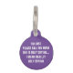 Paarse "Bel mijn moeder" Grappig Huisdierpenning