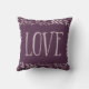 Robuuste bloemen en bladeren met een paarse achtergrond en met het woord "liefde". Deze bijtende florale kussen zijn perfect voor de Valentijnsdag of een mooie toevoeging aan je huis of kamer. *Gelieve te merken op dat het Watermerk Zazzle dat in de gezoemvoorproef verschijnt niet op het definitieve gedrukte product zal verschijnen. © Rosewood en Citrus