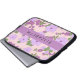 Paarse bloemen, bloemenpatroon, Jouw naam Laptop Sleeve