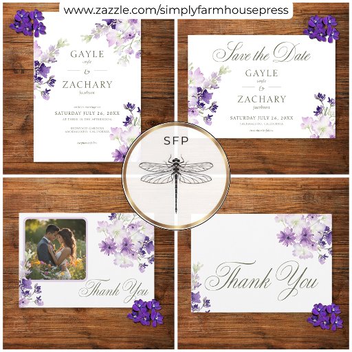 Purple Boho Wildflowers White WeddingOntworpen door Kathe Santillo