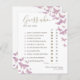 Paarse en gouden vlinders, met de hand getekend in de waterverf en digitaal gelaagd met goud en enkels (dit is GEEN echte folie!) versieren dit eenvoudige en elegante, boho chic custom vrijgezellenfeest "Raad eens wie..." spelkaart met moderne scriptkalligrafie. Pas het volledig aan, met de naam van de bruid en de datum en elk van de tien vragen.