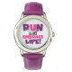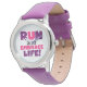 Als je graag 5 kilo's, 10 kilo's, halve marathons of marathons runt, dan hou je van dit kleurrijke tekstontwerp in het paarse en roze dat Ren en Embrace Life leest! Ren en schragen T-shirts, tassen, mokken, kaarten, stickers, iPhone en andere hoesjes voor elektronische apparaten, magneten, droog wasborden, horloges en nog veel meer!