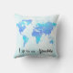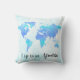 Paarse en blauwe Wereldkaart Leven is een avontuur Kussen