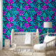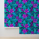 Paarse en Blauwgroen Blauwe Bloemen Behang