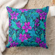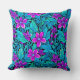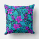 sierlijk patroon van paarse, blauwe, blauwgroen, turquoise en groene bloemen en loof kussen.