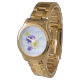 Prachtige Gold Bracelet Watch, met ons Paarse & gele blad Music Design - Geweldige Moederdag! Datablad Music Afbeelding met licentie van en copyright op grafische fabriek