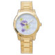 Paarse en gele vloer Blad Muziek Gold Watch Horloge