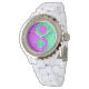 Yin En Yang Paarse en Groene Kunst Ontwerp Mode Polshorloge Tijdstuk. Klik op de knop AANPASSEN DEZE knop om dit te personaliseren met jouw namen, initialen of leuke boodschap. Levendige Ying Yang in groen en paars, gedaan in mijn plakjes kleurstijl. Dit oude Chinese symbool illustreert het concept dat er twee complementaire krachten in de wereld bestaan en het samenspel van deze krachten in het universum. De zon en de maan, man en vrouw, leven en dood. YinYang wordt gebruikt in moderne vormen van Zen en Feng Shui. Rustig. Adem een beetje in en voel de balans.