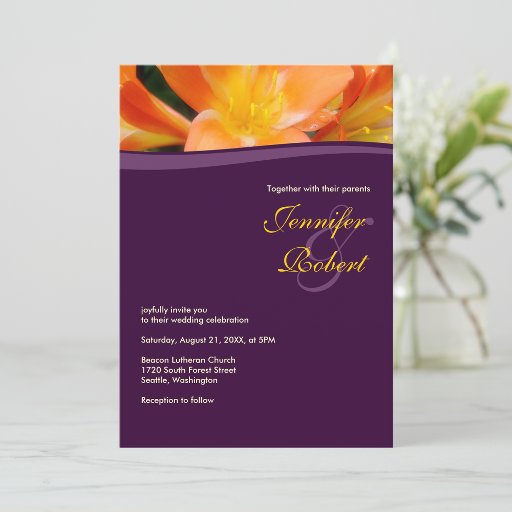 Paarse en Oranje budget bruiloft KaartPaarse en Oranje budget bruiloft Kaart (Voorkant)Paarse en Oranje budget bruiloft Kaart (Achterkant)