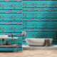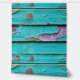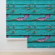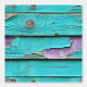 Faux distressed wood in turquoise blauw en paarse met een gechipt verfeffect herhaalde patroonstick en schil behang.