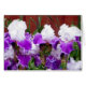 Paarse en witte baarzen bloeien met een dramatisch contrast.