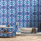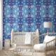 Paarse en blauwe met een lichte gloed fantasiepatroon behang.