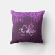 Paarse glitter druppelt op aangepaste monogram naa buitenkussen