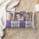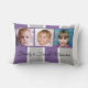 Cadeauidee, foto-collage kussen. Voeg uw eigen foto's aan dit Sierkussen, Lumbar Pillow, kussen toe en verander de tekst als u verkiest. Zes foto's staan op deze kussen, drie aan de voorkant en nog drie aan de achterkant. Familie is liefde en lachen. Familie is leuk en herinneringen. Paars, grijs en wit met strepen en zwarte tekst.