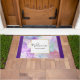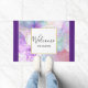 Een welkome deurmat met een prachtig artistiek schilderij. Creëer met stromende alcoholinkten. Paarse, groene en blauwe kleuren vloeien samen. Dunne golvende linten van goud vermengen zich met deze zachte zachte zachte zachte kleuren. Een wit vierkant met een faux gouden folie rand gelaagd over de top met jouw tekst binnen.