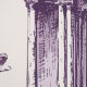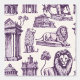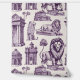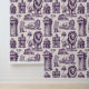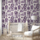 Dit luxe behang beschikt over een set leeuwen en beelden in paarse-inktstijl