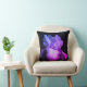 Een felle paarse iris maakt een gedurfde uitspraak op de donkere achtergrond van dit kussen. De levendige kleuren van de bloemblaadjes lijken bijna te gloeien. Dit dramatische bloemenkussen brengt levendige kleuren en verse bloemblaadjes om je huis op te fleuren en op te vallen als een opvallend accentstuk.