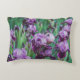 Florale kussen. Foto van mooie paarse irissen symboliseren wijsheid, moed en vriendschap voor elke bijzondere gebeurtenis. Geweldig cadeau voor vrienden of familie, glamoureus accent op je decor. U kunt de tekst "Er zijn altijd bloemen voor hen die hen willen zien" vervangen door uw eigen bericht