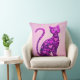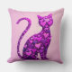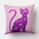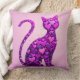 Een creatief ontworpen silhouet van een paarse kat samengesteld uit hartvormen op een roze achtergrond, dat liefde en affectie symboliseert met levendige kleuraccenten.