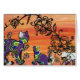 Een afdruk van een origineel, gemengd medium, katteontwerp gemaakt met behulp van collage-, teken- en schildertechnieken. Een geweldige kaart voor kattenliefhebbers.