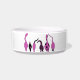 Een tekening van zes katten die pronken met hun schattige paarse peuken.