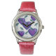 Paarse liefdesharten en libellen horloge