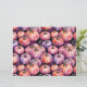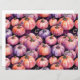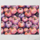 Een uniek Herfst- en herfstpatroon met paarse en oranje waterverf textuur pompoenen op een donkere achtergrond.