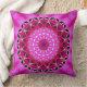 Dit paarse kussen heeft een afbeelding van paarse orchideeën die door de digitale "caleidoscoop" zijn gedraaid om een mandala-effect te creëer. De levendige paarse paars zijn geaccentueerd met zwart en groen, en kunnen een gedurfde uitspraak doen in uw interieur. Dit vierkante kussen is verkrijgbaar in twee maten en meerdere stoffen. Andere kussens met paarse mandala-motieven in dezelfde kleur zijn ook beschikbaar.