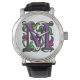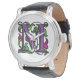 Elegant purplemonogram M in de stijl van een middeleeuws of renaissance periode verlicht manuscript.
