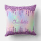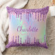 Paarse roze glitter druppelt naamscript af kussen