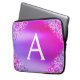 Paarse roze glitter en spaarmonogram laptop sleeve