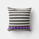 Paarse rozen op zwarte, witte, gouden strepen kuss kussen