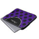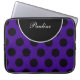 Paarse laptophoes met ruimte voor een naamdruppel of een monogram en een kleurrijk polka-puntpatroon dat uw draagbare elektronica zoals uw netbook, laptop of tablet in stijl beschermt. Ideale laptophoes voor 15-inch laptops en draagbare apparaten.