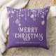 Paarse en witte touwtjes lichten sprankelend kerstkussen met een schattig grillig leuk feestelijk kerstcadeau.