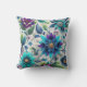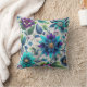 Paarse Turquoise Witte Bloemen Ontwerp Kussen