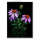 Een duidelijk afbeelding van knoppen en bloesems van paarse coneflower tegen een donkere achtergrond.