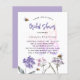 Een witte achtergrond. Gedemoreerd met bijen en schilderde wilde bloemen in viool, roze en een grote vlinder. Pas een naam en partijdetails aan en voeg deze toe. 1 vel = 1 uitnodigingsrand aan rand.