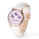 Dit horloge heeft drie mooie paarse vlinders op een lila achtergrondkleur. Er is ook een aanpasbaar tekstgebied voor een naam en het klokgezicht bestaat uit stijlvolle zwarte lijnen.