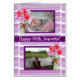 paarse waterverf bloemen kaart, met baby afbeeldingen en nu afbeeldingen. Voeg afbeeldingen, naam en leeftijd toe in het gebied personaliseren.