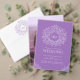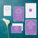 Paarse witte blad tekening monogram bruiloft menu