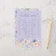 Betrek je gasten bij speelse voorspellingen met ons 'Would She Rather' bruidsshowerspel, mooi omlijst door handgeschilderde pastelkleuren wilde bloemen en delicate roze en paarse vlinders op een zachte lavendel achtergrond. Deze charmante spelkaart voegt niet alleen plezier toe aan je evenement, maar vormt ook een mooie aanvulling op het betoverende thema, waardoor het een perfecte toevoeging is aan je bruidsshowersactiviteiten.