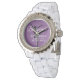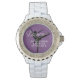 Vrouwenhorloge met een ballerina dansersilhouette op een paarse achtergrond en tekst: "Dans is de verborgen taal van de ziel." Maakt het perfecte cadeau voor de danseres of dansleraar.