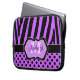 Deze gepersonaliseerde paarse, zwarte en witte zebrastrepen en polka stipjes laptophoes hebben tekstvakken voor u om jouw naam en monogram toe te voegen. Als u hulp nodig hebt bij het aanpassen van deze gegevens met uw eigen gegevens, kunt u een e-mail sturen naar niteowlstudio@gmail.com voor hulp.