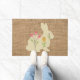 Doormat met het lichtgekleurde silhouet van een paasbunny met lentbloemen op de achtergrond van de schoot. Geweldig thuis voor een rustige lente decor. Ontwerp door Alma Wad.