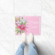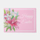 Deurmat afgebeeld met een lichtroze kleur achtergrond en witte rand met een Happy Easter tekst en een mooie bloemenprint. Kleuren: Lichtroze. Pas dit object aan of koop zoals het is.