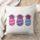 Een afbeelding van drie oostereieren met bloemen en lint in stripe kleuren van roze, magenta en violet. Dit ontwerp is een cadeauidee voor verrassing-liefhebbers, oejagers-liefhebbers en pastelkleurliefhebbers.