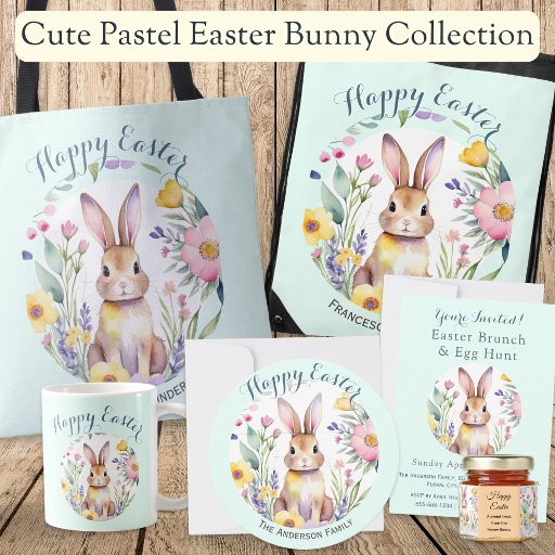 Deze prachtige uitnodiging afbeeldingen een schattig paashaas tussen de bloemetjes in een waterverf stijl, op een frisse mintgroene achtergrond. Het kan worden gepersonaliseerd met alle details van uw evenement en is ideaal voor paaseieren, brunch en andere seizoensgebonden bijeenkomsten.